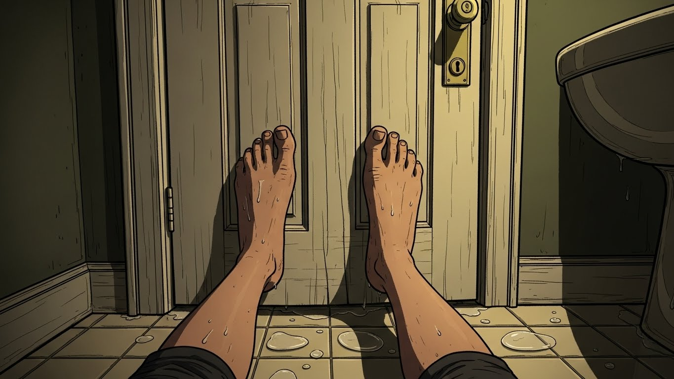 I backed away from the door, nearly slipping on the wet tiles. My mind raced through options. The bathroom window was too small to climb through. There was no other exit. I was trapped in a two-meter-square room with nothing but a towel and a growing sense of absolute terror.