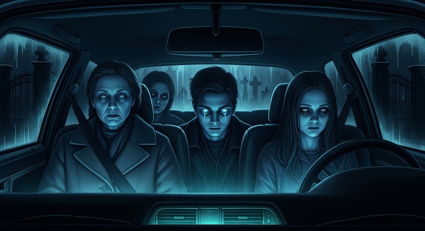 They were fading. All three of them. Like smoke. The woman’s face was translucent. I could see the headrest through her skull. The bloke’s hands were disappearing, finger by finger. The girl’s mouth moved, but no sound came out.